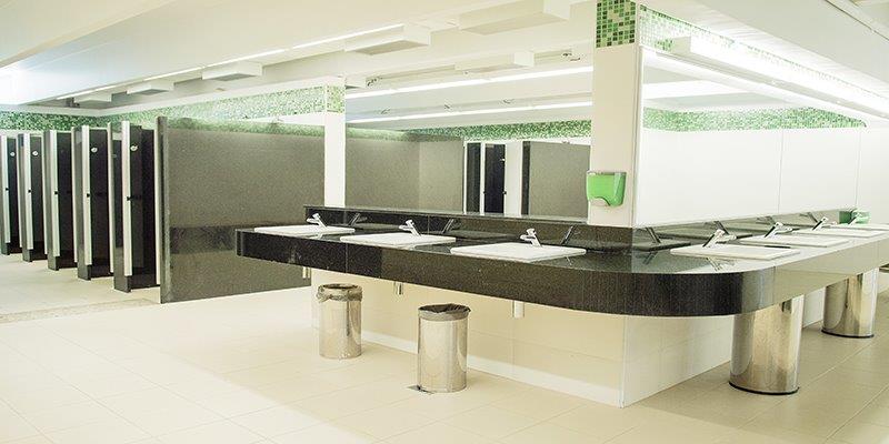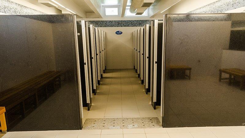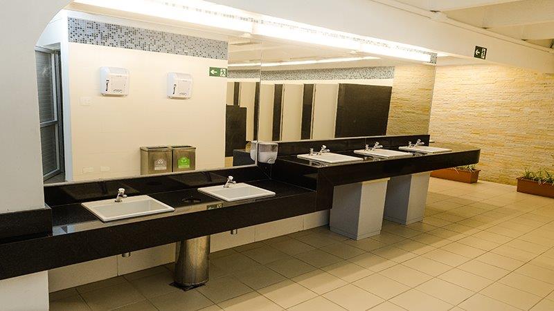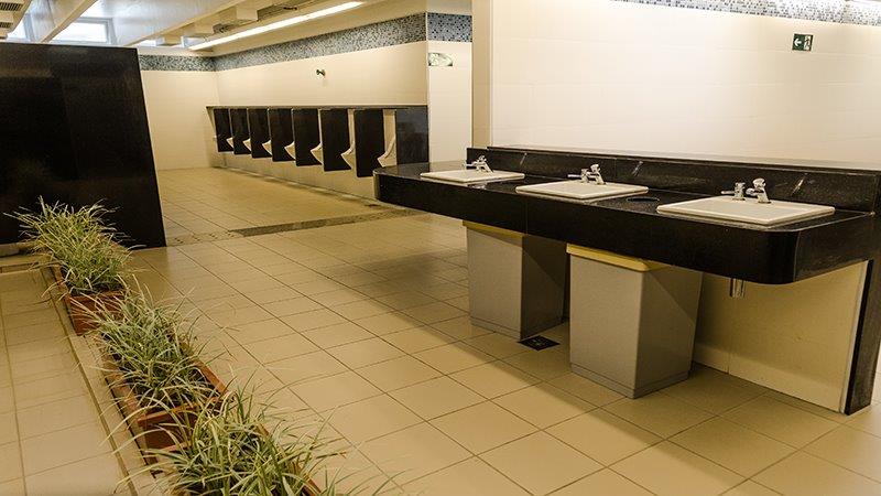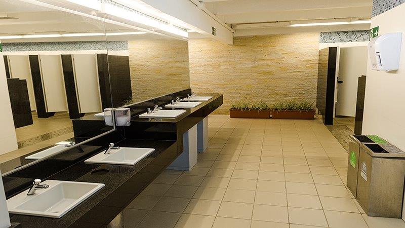 O Sesc disponibiliza um vestiário com armários e family-room (vestiário familiar).